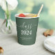 Fourniture élégante et élégante de fête de graduation personnalisée! Célébrez la réussite du diplômé en style avec ces tasses à papier tendance pour la remise des diplômes. Design propose "Class of 2024" en police blanche et élégante sur un bel arrière - plan vert sage. Personnalisez ce produit en ajoutant le nom de votre diplômé, l'année de diplôme et les détails de l'école. Facile à customiser. Fournitures de fête de remise de diplômes correspondant disponibles. Félicitation !