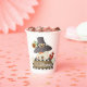 Un personnage de style champêtre tenant un signe qui dit compter vos bénédictions. Cette conception semble vraiment efficace sur ces tasses de papier