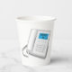Un téléphone avec un écran qui dit contactez-nous. Cette conception semble vraiment efficace sur ces tasses de papier