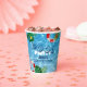Qui n'aime pas une fête de piscine ? Ces tasses en papier pour fêtes d'anniversaire exhalent les vibrations estivales avec son arrière - plan d'eau bleu aqua cristalline, avec des ondulations douces qui vous attirent pour une baignade ou se balader vers le cool. Le design est décoré de feuilles de feuillage vert tropical, d'une fleur jaune tropical vif et d'anneaux gonflables rouges et blancs traditionnels. Il s'agit d'un modèle moderne avec un titre amusant "POOL PARTY", nom et âge. Les articles correspondants sont disponibles dans notre collection "Piscine tropicale".