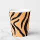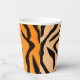 Ces tasses en papier présentent un imprimé faux Tiger avec des bandes de Tiger simulées en noir sur un arrière - plan orange dégradé.