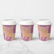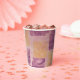 Ces tasses en papier sont munies d'un joli imprimé en gel mauve et doré carré.