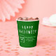 Joyeux Halloween ! L'un des jours fériés de l'année pour annoncer votre entreprise ou promouvoir votre marque auprès des clients. D'ailleurs, cherchez-vous une tasse de papier avec des salutations Halloween pour votre entreprise de café? Veuillez voir cette tasse de papier vert. Il se pourrait que tu l'aimes. Les couleurs de police sont vert clair et blanc. Customisez-le et utilisez-le comme un matériel de marketing pour annoncer votre entreprise et saluer vos clients cette Halloween. Pour customiser cette tasse de papier, téléchargez votre logo d'entreprise, tapez votre nom d'entreprise ou de société, votre adresse et votre numéro de téléphone. Veuillez vérifier l'apparence après avoir téléchargé le logo et tapé des textes. Si l'apparence vous plaît, vous pouvez passer votre commande maintenant. Si vous avez besoin de redimensionner et déplacer le logo et les textes pour tenir sur cette tasse de papier, s'il vous plaît changer dans l'outil de conception. Vous pouvez également effectuer d'autres modifications selon vos préférences dans l'outil de conception, comme changer la couleur de la tasse de papier, la couleur de police et le style de police. Tasse en papier avec votre nom d'entreprise pour sensibiliser la marque pendant que vos clients aiment siroter le bon café aromatique que vous leur avez servi.