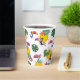 Voici un design coloré rempli de toucans, de feuilles tropicaux, de fleurs et de soleil autour d'une tasse de papier fête.