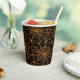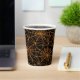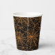 La tasse de papier de fête d'Halloween est montrée avec une toile d'araignée imprimé. Couleurs Black & Orange Customisez cet article ou achetez tel quel.
