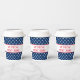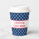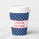Coupes en papier sur mesure Patriot avec motif étoile américain. Fournitures jetables avec bleu marine ou couleur personnalisée. Impression recto verso avec texte personnalisé. Design élégant pour Anniversaire, mariage, douche nuptiale, fiançailles, anniversaire, baby shower, barbecue, fête de bureau, 4 juillet et plus. La typographie moderne. Idéal pour le café et autres boissons.