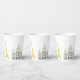 Des tasses de fête avec des monuments célèbres de Paris. La Tour Eiffel, le Sacré Coeur, l'Arc de Triomphe et Notre Dame. Coupe blanche avec grand art représentant ces structures emblématiques.