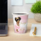 Coupes en papier baby shower Princess avec adorable fille de princesse afro-américaine avec mignon poils afro bouffés, couronne et tutu sur un joli arrière - plan parties scintillant rose et or. Ces tasses de papier baby shower princesse sont facilement personnalisées pour votre événement en ajoutant le texte de votre choix. Vous pouvez supprimer le graphique qui est une image de fille.