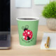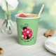 Ladybug avec des tasses de papier de conception de points blancs avec texte personnalisable et couleur arrière - plan.