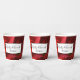 Personnalisez ces jolis tasses en papier Mariage carnation rouge Floral pour votre réception mariage décontractée mais classe ou fête de jardin de douche nuptiale. Ces gobelets jetables fleuris informels mais élégants présentent une photo florale peinte numériquement gros plan d'une fleur de carnation rouge fleurie de pétales bouclés.