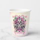 Gobelets En Papier Crâne floral, squelette aquarelle rose, Halloween.