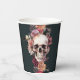 Doté d'un crâne gothique avec abricot pâle, de fleurs noires et bordeaux sur un arrière - plan noir profond. Correspond à la collection du parti "Mort de sa vingtaine".