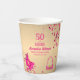 Pour la fête d'anniversaire de la fashionista de 50 ans Papier Cups. Fabulous script fuchsia rose chaud pour femmes en or glamour feuille métallique faux rose chaud confetti, belle une paire de talons hauts 👠 avec des arcs assis dans le coin gauche et un mignon et coloré sac à 👛 rose doré (sac à main) se trouve dans le coin inférieur droit,50 et Fabulous script rose chaud fuchsia sur feuille d'or faux métallique. Vous pouvez facilement modifier votre nom, vos polices, votre taille, votre couleur et votre numéro d'âge en cliquant sur les options de personnalisation de Zazzle.