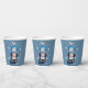 Cute blue paper cups for your winter party featuring a sweet cartoon penguin sipping on a hot cocoa . Add a lid if you wish . Look in our collection for matching plates and napkins .