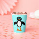 Ce magnifique ensemble de tasses en papier présente un joli personnage de pingouin avec un ventre blanc, de grands yeux bleus avec des élèves noirs et de mignons pieds oranges et bec. Ce charmant petit oiseau d'hiver ravira petits et grands. Le pingouin est assis sur un arrière - plan bleu pâle glacé pour lui rappeler sa maison arctique froide.