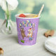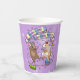 Mignonne souris dansantes sur des tasses en papier. Utilisez "Personnalisez ce modèle" pour modifier le texte de "Rachel's 12th Birthday Party" et créer des accessoires uniques et customisés ; les changements de texte sont reflétés de part et d'autre. Des tasses avec deux souris heureuses en casquettes de fête, dansant comme des confettis et un ruban tombent autour d'elles, avec des ballons éparpillés sur le sol, avec un arrière - plan floral.
