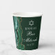 L'agate chic vert foncé et or orne le côté de cette partie moderne de Bar Mitzvah personnalisé en faveur tasse de papier Le nom de votre fils est écrit dans un magnifique script formel sous l'Étoile de David. Décor parfait pour une famille juive classe célébrant l'appel de leur garçon à la Torah.