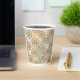 Délicieux Motif de marguerite sur Pastel Arrière - plan Latte Mug. Cette motif sans couture présente de charmantes marguerites avec des pétales blancs et des centres jaunes vibrants, dressés contre un arrière - plan pastel doux. L'arrière - plan passe doucement à travers une palette de couleurs douces, dont des teintes de rose, bleu, vert et pêche, créant une atmosphère sereine et fantaisiste. Les marguerites sont espacées de façon égale et sont restituées dans un style dessiné à la main, ce qui donne au design une atmosphère ludique et artistique. Parfait pour les projets sur le thème du printemps, la papeterie, les impressions de tissu ou les arrière - plans numériques.