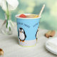 Pingouin de style dessin animé. Ciel bleu dans l'arrière - plan. Coupes de papier décoratif sur mesure pour décoration de fête. Modifier le texte pour customiser. Idée cadeau pour les amateurs de pingouins.