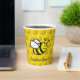 Caricature souriante d'abeilles volantes sur un arrière - plan sans soudure de ruche d'abeilles. Texte personnalisé des deux côtés.
