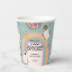 Retro Deux tasses à papier Éffrayant Halloween 2nd Birthday Party - Soyons Super ! Le design comprend un arrière - plan coloré avec un arc-en-ciel boho. Des illustrations cool rétro décorent le modèle simple avec d'adorables fantômes hippies, des fleurs de crâne, une boule de disco éffrayante et des bonbons spooktaculaires.