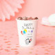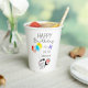 Une tasse de papier d'anniversaire avec ballons colorés et design stéthoscope > vous pouvez la personnaliser avec votre nom de médecin