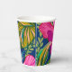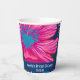 Ces gobelets en papier pour soirée de mariage florale et botanique présentent des fleurs aquarelles en rose, violet et couleur pêche et des feuilles dans des nuances vives de vert avec du rose chaud en arrière-plan. Une invitation parfaite et colorée pour une soirée de mariage florale