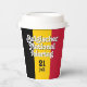Célébrez la Fête nationale belge avec ces tasses en papier audacieuses et brillantes du 21 juillet, qui arborent les trois couleurs du drapeau national belge et "Belgischer Nationalfeiertag" en élégantes lettres blanches. Reverse affiche un design identique. Design © W.H. Sim. Voir plus sur zazzle.com/expressionsoccasions