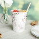 Des arrangements de feuillage délicats avec de petites accents de fleurs dans des tons crème doux et rêvés, de l'or taupe et rose avec des éclaboussures de parties scintillant, et des dispositions uniques de design font de cette collection une collection passionnante, surtout pour les mariages printaniers. La tasse en papier mariage montrée ici présente une bordure d'angle feuillue entourant le nom de la mariée et du marié et la date du mariage. Visualisez le lien de collection sur cette page pour voir tous les éléments correspondants dans cette belle conception ou recherchez ID817 pour voir d'autres pièces et choix de couleurs pour cet ensemble.