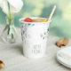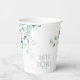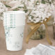 Des aménagements de verdure inspirés de la nature, comme des eucalyptus à gomme bleue avec des éclaboussures de feuilles d'or et d'or, ainsi que des aménagements de design uniques en font un ensemble mariage passionnant pour n'importe quelle période de l'année. La tasse en papier mariage montrée ici présente une bordure d'angle feuillue entourant le nom de la mariée et du marié et la date du mariage. Visualisez le lien de collection sur cette page pour voir tous les éléments correspondants dans cette belle conception ou recherchez ID817 pour voir d'autres pièces et choix de couleurs pour cet ensemble.