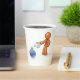 Une figure verte arrosant la terre. Cette conception semble vraiment efficace sur ces tasses de papier