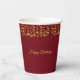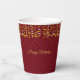 Elégant Confetti doré festif d'anniversaire sur tasses en papier bordeaux. Le texte peut être personnalisé.