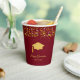 Elegant Graduation festive confetti d'or sur des tasses de papier bordeaux. Le texte peut être personnalisé. La connaissance, c'est le pouvoir, fêtons !