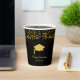 Elegant Graduation festive confetti doré sur tasses en papier noir. Le texte peut être personnalisé. La connaissance, c'est le pouvoir, fêtons !