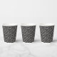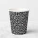 Ces tasses en papier ont un motif abstrait damassé noir et blanc élégant avec des rouleaux blancs fantaisie.