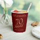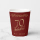 Elégant Rouge 70 et Fabulous Ornament 70th Birthday Party Paper Cups. 70 et texte fabuleux en écriture dorée tendance sur un arrière - plan rouge foncé. Personnalisez-le avec votre nom et votre âge, et faites vos propres tasses de fête d'anniversaire élégantes pour une fête d'anniversaire de femme.