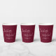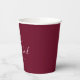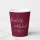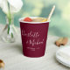 Élégante tasse de papier mariage bordeaux personnalisée avec les noms de style signature et votre date de mariage spécial. Conçu par Thisisnotme©