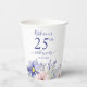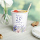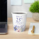Ces élégantes tasses de papier de fête de 25 ans à l'aquarelle fleurie présentent de jolies fleurs d'été dans les marguerites roses et violettes et des roses avec un nom et une date à personnaliser dans le script moderne. Conçu par Susan Coffey.