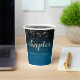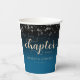 Faites de votre journée spéciale une fête inoubliable avec ces tasses en papier simples mais élégantes, qui sont élégamment écrites à la main et de bloc de lettrage en pêche avec une douche de confettis sur un noir à éblouissant nuage océanique de bleu évocateur de l'arrière - plan méditerranéen. Customisez comme vous le souhaitez. Reverse affiche un design identique. Design © W.H. Sim. Voir plus sur zazzle.com/expressionsoccasions