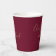 Élégante signature bordeaux et or tasse en papier personnalisée avec les noms de style de signature et votre date de mariage spéciale. Conçue par Thisisnotme©