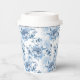 Gobelets En Papier Élégantes pivoines gravées en bleu et blanc