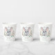 Cette charmante illustration dessinée à la main présente un bébé éléphant assis parmi des pivoines délicates et des feuilles d'eucalyptus, créant une atmosphère sereine et fantaisiste pour vos tasses de baby showers. Il vous suffit de cliquer sur le bouton "Personnaliser" pour ajouter les détails de votre fête et le rendre unique à vous.