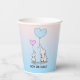 Elephant Love Pink & Blue Heart Balloons Design Tasses en papier avec texte personnalisable. Parfait pour une Révélation de genre ou pour annoncer des jumeaux fraternels.