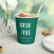 Ajoutez du plaisir à votre événement mariage de bachelorette avec ces simples tasses en papier couleur vert émeraude, ainsi que le nom de la bachelorette et la date de la fête imprimés en lettres blanches et stylisées. Modifiez et remplacez le nom de la bachelorette et la date de l'événement par votre propre nom.