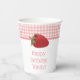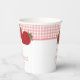 Ces tasses en papier sont prêtes à être customisées avec vos propres messages avec un spot pour ajouter un message sur le devant et sur le dos. Elles présentent une bordure de en vichy rose accentuée de fraises rouges mûres. Vos messages apparaissent dans la coordination des lettres roses.