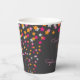 Cette tasse de papier d'anniversaire pour enfant présente un thème Twinkle Twinkle Little Star avec un arrière - plan de tableau noir gris foncé et des étoiles rose, orange et argent brillant.
