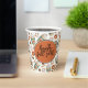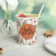 Cette tasse de papier est parfaite pour toute personne qui a hâte de tomber et toutes choses citrouille épice. Le design présente une image aquarelle d'une boisson citrouille d'épices avec un assortiment de bonbons d'automne avec le dicton "happy fall y'all" en lettres noires à la main dans un cercle orange.