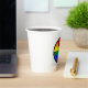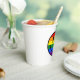 Cette oeuvre colorée présente un visage souriant arc-en-ciel.