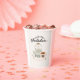 Une théière et une tasse avec les mots en font un octobre à retenir. Cette conception semble vraiment efficace sur ces tasses de papier
