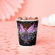 Une belle illustration d'une jeune fille afro-américaine portant une jolie jupe en forme de pétale et un bustier assis avec ses ailes roses et violettes ouvertes. Elle vous regarde avec ses grands yeux et elle sourit. De jolies lumières à cordes étincelantes apparaissent derrière son ensemble sur un arrière - plan de couleur noire. Idéal pour fêtes d'anniversaire de conte de fées pour filles.